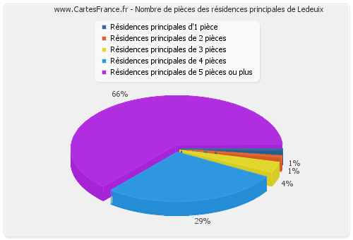 - Nombre de résidences principales de Ledeuix de cinq pièces et plus : 277