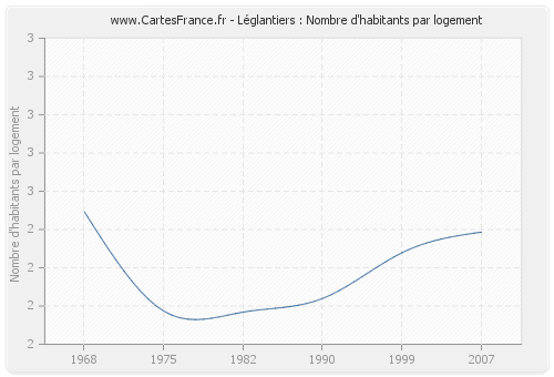 - Nombre d'habitants moyen par logement de Léglantiers en 1975 : 2,20