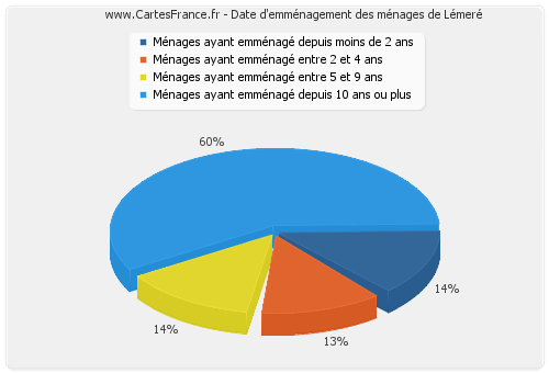 - Nombre de ménages de Lémeré ayant emménagé depuis 10 ans ou plus : 104