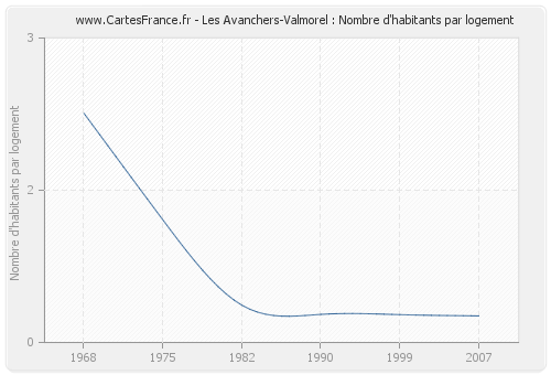- Nombre d'habitants moyen par logement de Les Avanchers-Valmorel en 2007 : 0,26