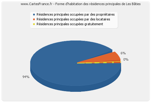En 2007, 31 résidences principales de Les Bâties étaient occupées par des propriétaires.
