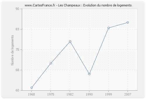 Historique du nombre de logements de Les Champeaux de 1968 à 2007 :