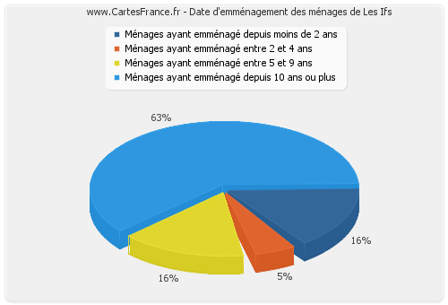 - Nombre de ménages de Les Ifs ayant emménagé depuis 10 ans ou plus : 12