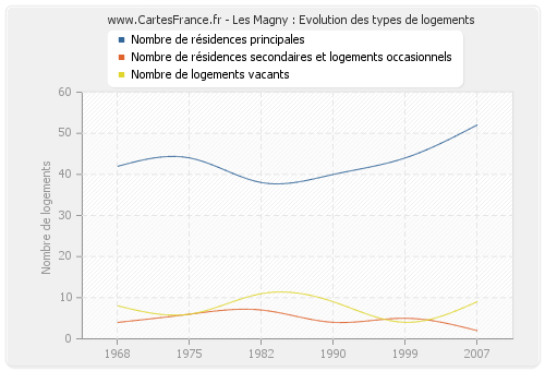 - Nombre de résidences principales de Les Magny en 2007 : 52