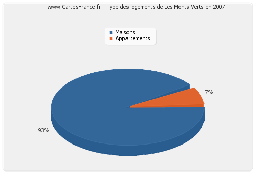 En 2007 les logements de Les Monts-Verts étaient composés de 138 résidences principales, 64 résidences secondaires ou occasionnels ainsi que 3 logements vacants.