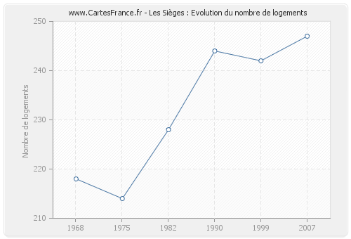 Historique du nombre de logements de Les Sièges de 1968 à 2007 :