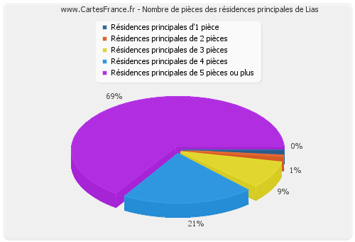 Nombre de pièces des résidences principales de Lias en 2007 :