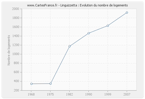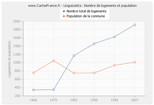 Historique du nombre de logements de Linguizzetta de 1968 à 2007 :