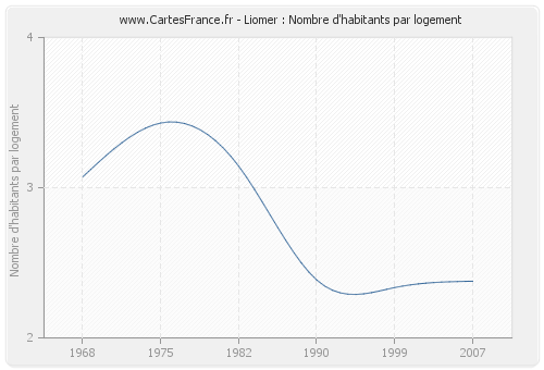 Le Village de Liomer avait en 2007 une moyenne de 2,38 habitants par logement.