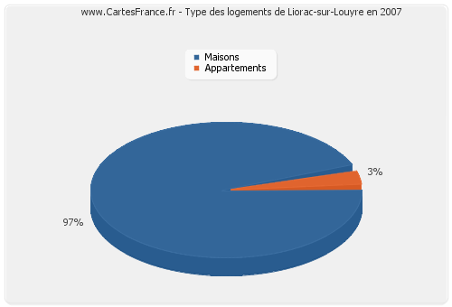En 2007 les logements de Liorac-sur-Louyre étaient composés de 110 résidences principales, 28 résidences secondaires ou occasionnels ainsi que 10 logements vacants.