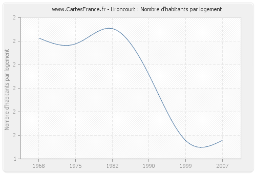 - Nombre d'habitants moyen par logement de Lironcourt en 2007 : 1,48