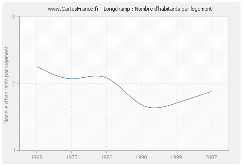 - Nombre d'habitants moyen par logement de Longchamp en 2007 : 1,88