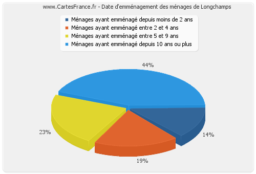 - Nombre de ménages de Longchamps ayant emménagé depuis 10 ans ou plus : 90