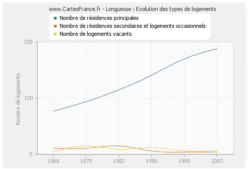 - Nombre de résidences principales de Longuesse en 2007 : 188