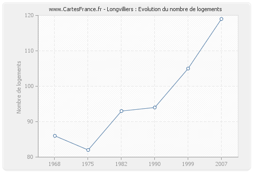 Historique du nombre de logements de Longvilliers de 1968 à 2007 :