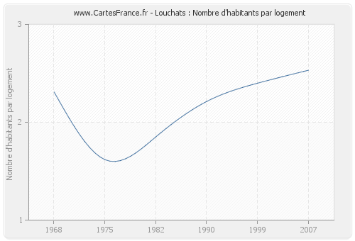 - Nombre d'habitants moyen par logement de Louchats en 2007 : 2,53
