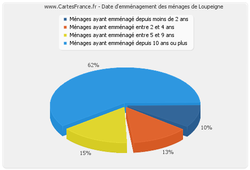 - Nombre de ménages de Loupeigne ayant emménagé depuis 10 ans ou plus : 24