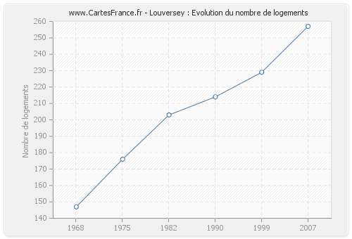 Historique du nombre de logements de Louversey de 1968 à 2007 :