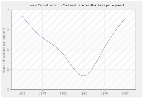 - Nombre d'habitants moyen par logement de Machézal en 2007 : 1,95