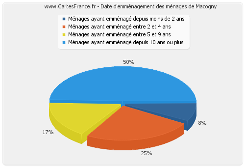 - Nombre de ménages de Macogny ayant emménagé depuis 10 ans ou plus : 12