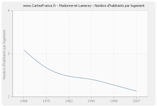 - Nombre d'habitants moyen par logement de Madonne-et-Lamerey en 2007 : 2,13