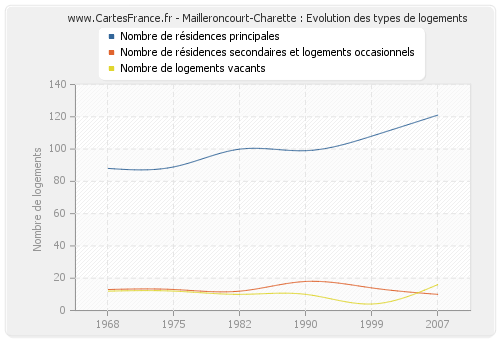 En 2007 les logements de Mailleroncourt-Charette étaient composés de 121 résidences principales, 10 résidences secondaires ou occasionnels ainsi que 16 logements vacants.