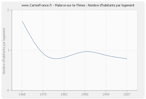 - Nombre d'habitants moyen par logement de Malarce-sur-la-Thines en 2007 : 0,79