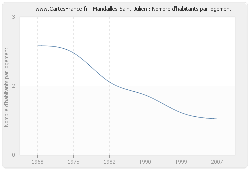 - Nombre d'habitants moyen par logement de Mandailles-Saint-Julien en 2007 : 0,78