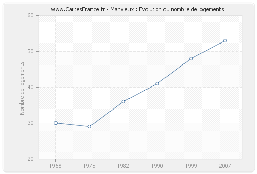 Historique du nombre de logements de Manvieux de 1968 à 2007 :