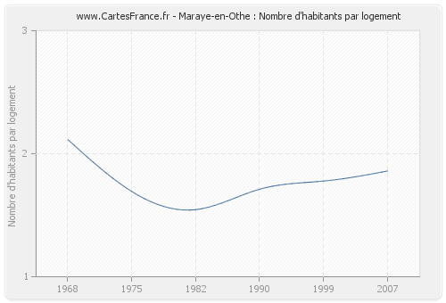 - Nombre d'habitants moyen par logement de Maraye-en-Othe en 2007 : 1,86