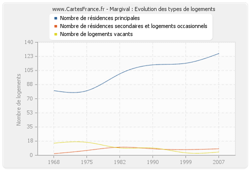 En 2007 les logements de Margival étaient composés de 126 résidences principales, 8 résidences secondaires ou occasionnels ainsi que 4 logements vacants.