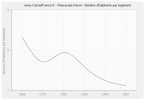 - Nombre d'habitants moyen par logement de Mascaraàs-Haron en 1968 : 3,33