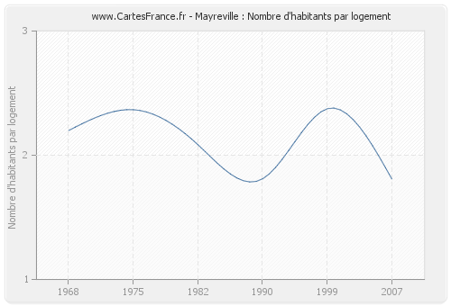 - Nombre d'habitants moyen par logement de Mayreville en 2007 : 1,81