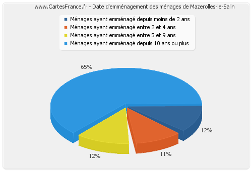 - Nombre de ménages de Mazerolles-le-Salin ayant emménagé depuis 10 ans ou plus : 43