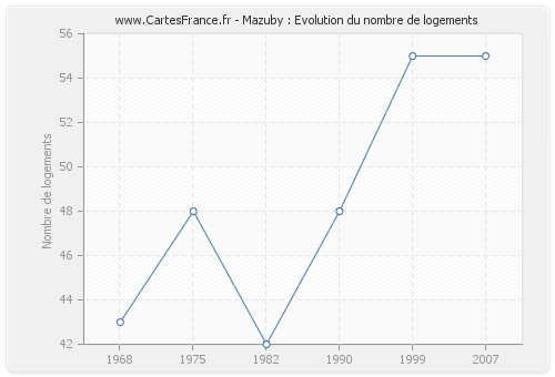 Historique du nombre de logements de Mazuby de 1968 à 2007 :