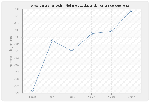 Historique du nombre de logements de Meillerie de 1968 à 2007 :