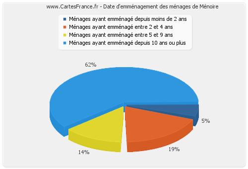 - Nombre de ménages de Ménoire ayant emménagé depuis 10 ans ou plus : 23
