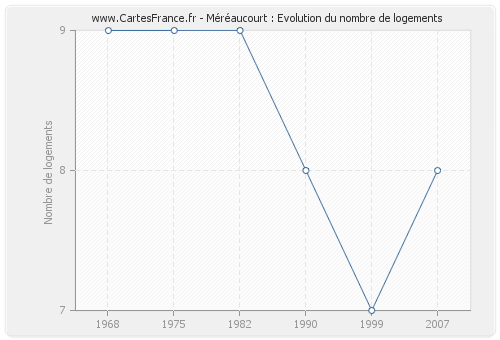 Historique du nombre de logements de Méréaucourt de 1968 à 2007 :