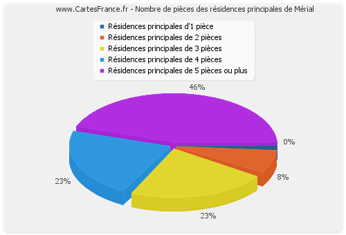 - Nombre de résidences principales de Mérial de cinq pièces et plus : 6