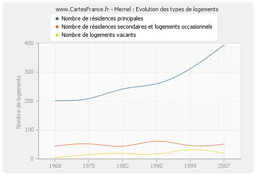 Historique du nombre de logements de Mernel de 1968 à 2007 :