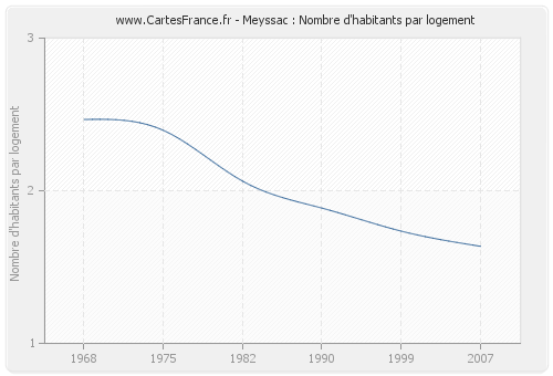 - Nombre d'habitants moyen par logement de Meyssac en 2007 : 1,64