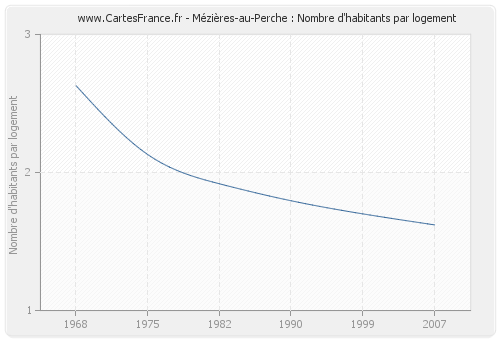 - Nombre d'habitants moyen par logement de Mézières-au-Perche en 2007 : 1,62