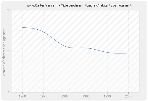 - Nombre d'habitants moyen par logement de Mittelbergheim en 2007 : 1,96