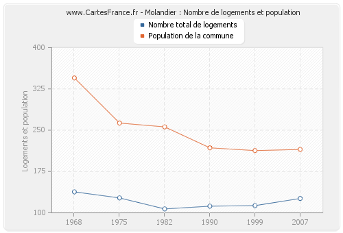 Historique du nombre de logements de Molandier de 1968 à 2007 :