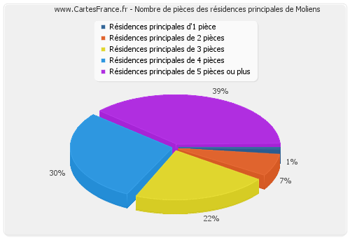 - Nombre de résidences principales de Moliens de cinq pièces et plus : 160
