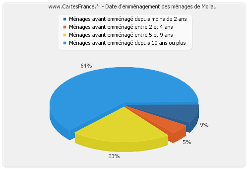 - Nombre de ménages de Mollau ayant emménagé depuis 10 ans ou plus : 113