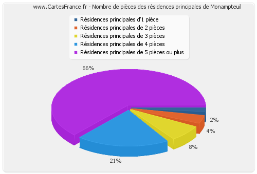 Nombre de pièces des résidences principales de Monampteuil en 2007 :