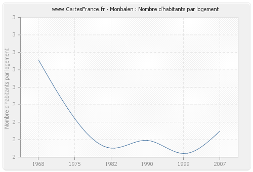 - Nombre d'habitants moyen par logement de Monbalen en 2007 : 2,27