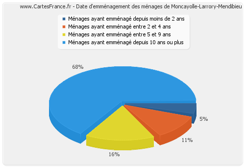 - Nombre de ménages de Moncayolle-Larrory-Mendibieu ayant emménagé depuis 10 ans ou plus : 84
