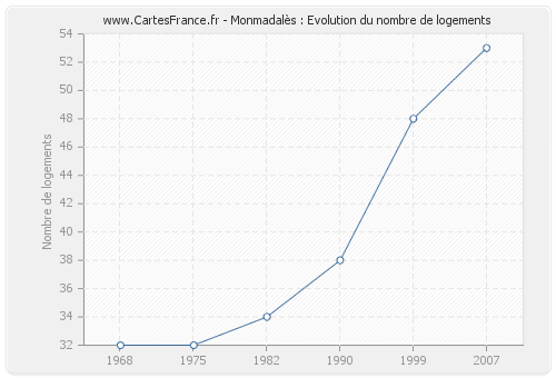 Historique du nombre de logements de Monmadalès de 1968 à 2007 :